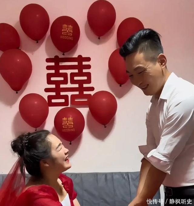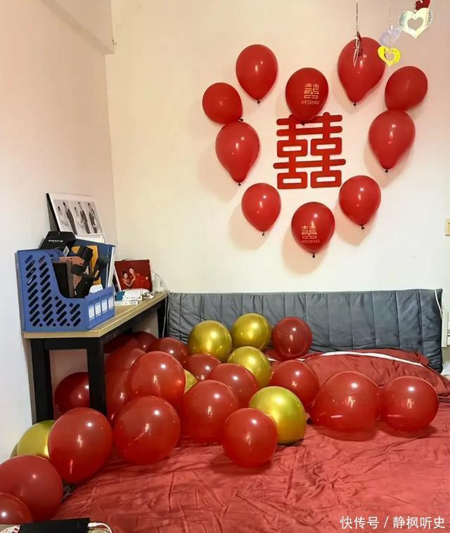 两人生活都很拮据,还有外债,因此他们并没有置办酒席宴请宾客。 而男方家里父母早逝,也没有双亲,他们便在自己的出租屋内准备举办简单的婚礼。 从现场照片可以看到,出租屋内极其简陋,仅仅只有几个红色的气球和几个喜字来衬托氛围。